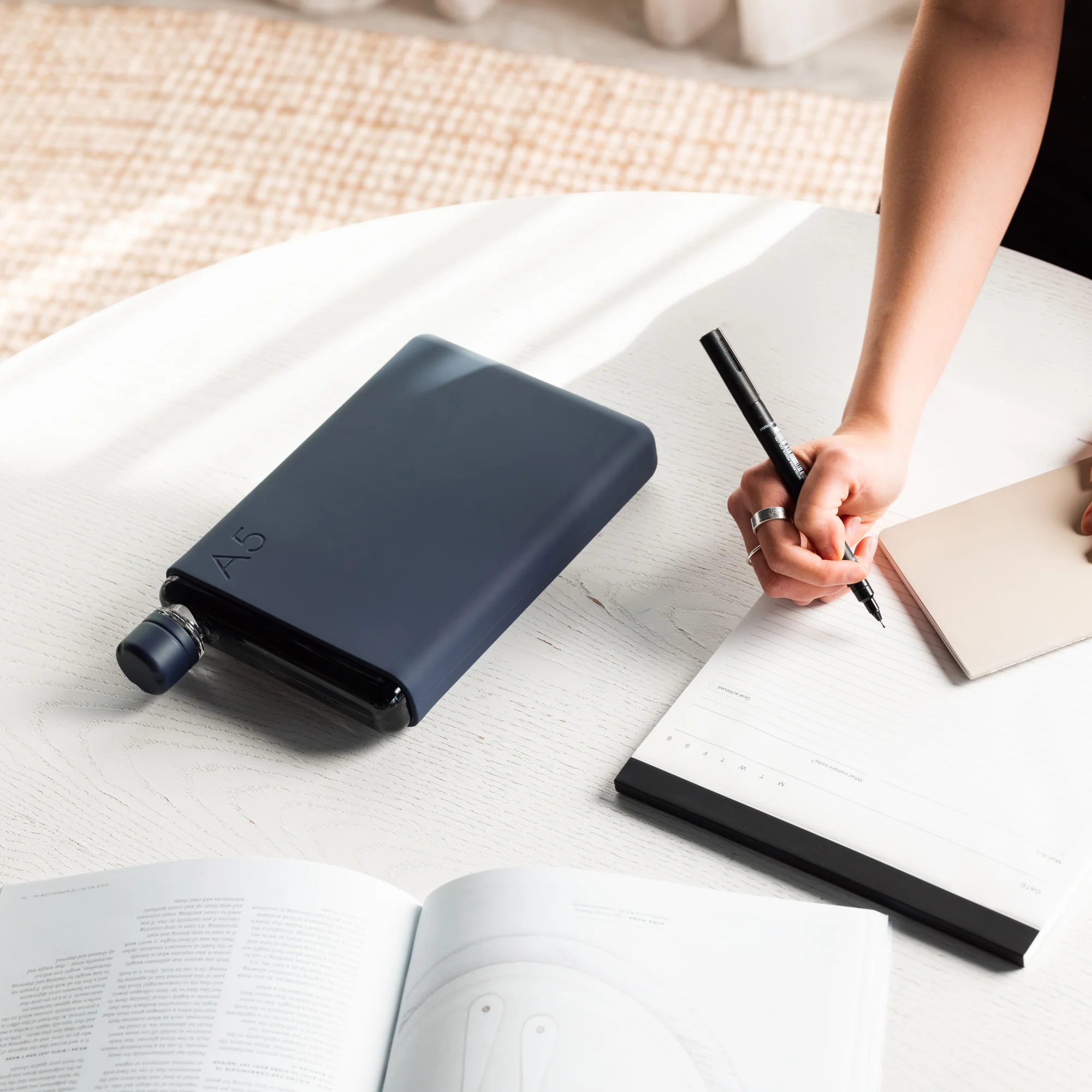 The memobottle easily fits in your pocket, handbag, or backpack, thanks to its space-saving form. Its paper-inspired design allows for a Tetris style fit in your bag, flat against your books, laptop, and more.
