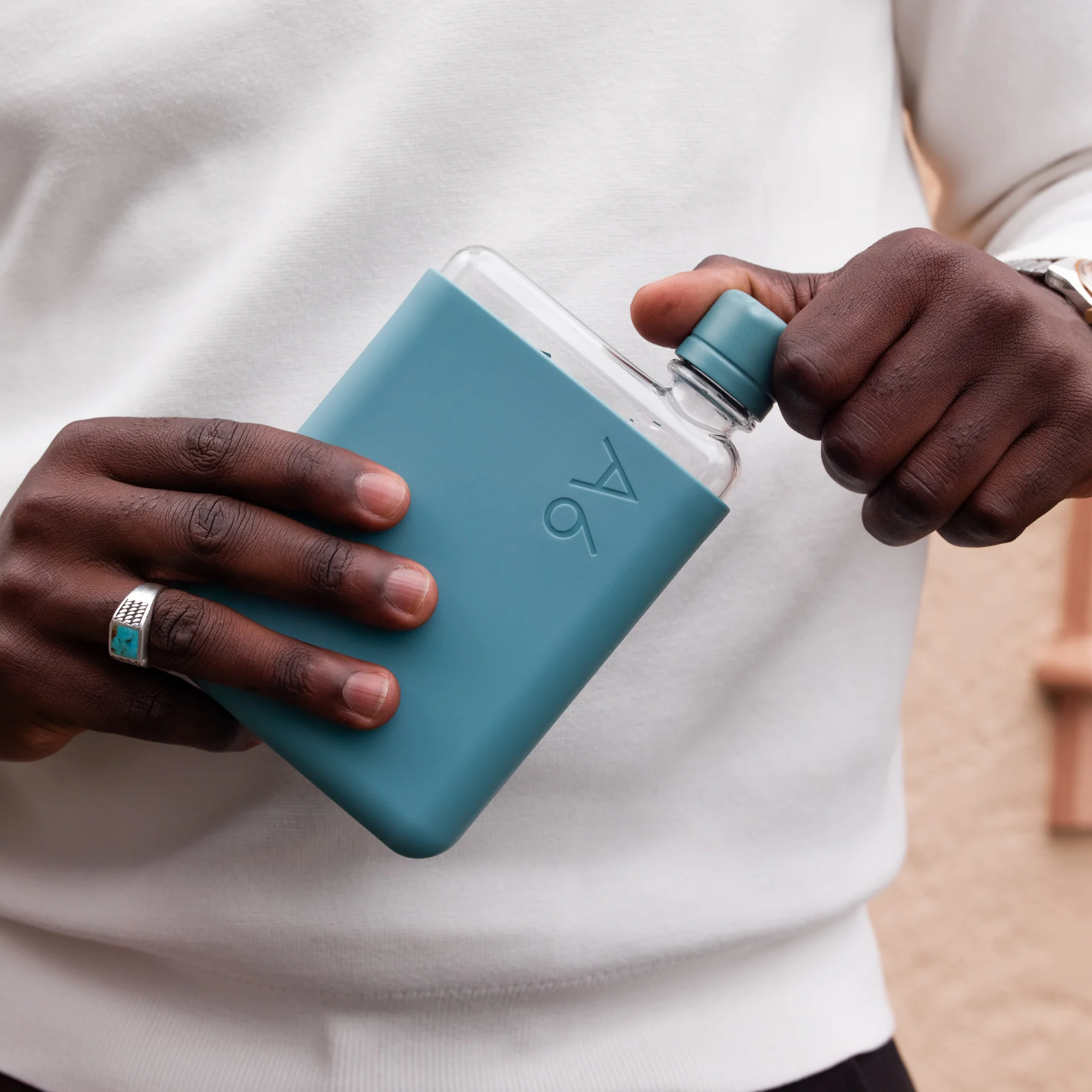 The memobottle easily fits in your pocket, handbag, or backpack, thanks to its space-saving form. Its paper-inspired design allows for a Tetris style fit in your bag, flat against your books, laptop, and more.